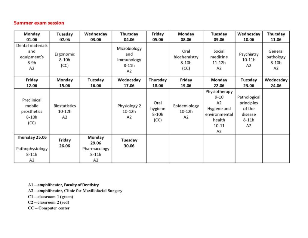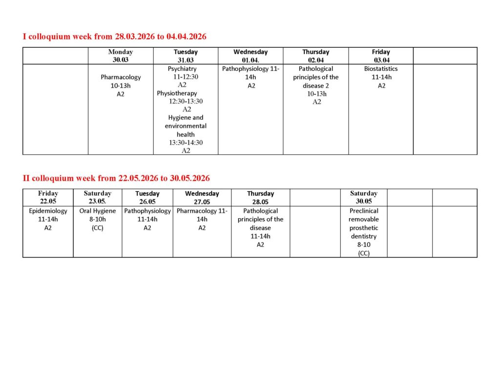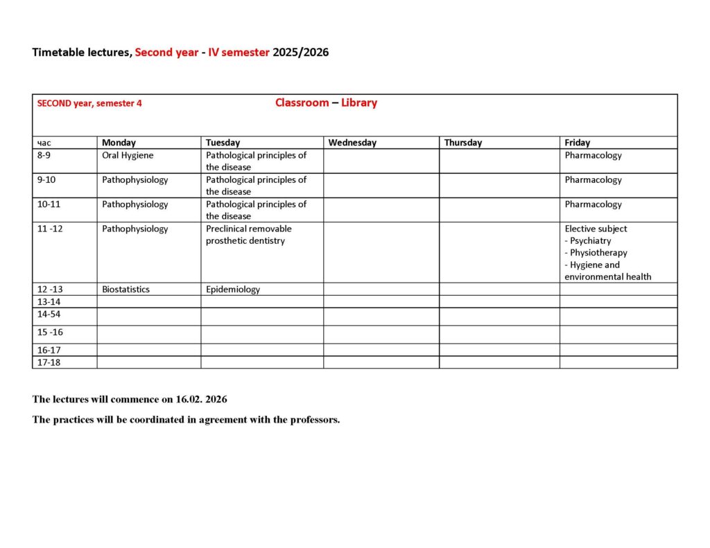 Timetable lectures, Second year – IV semester 2025/2026